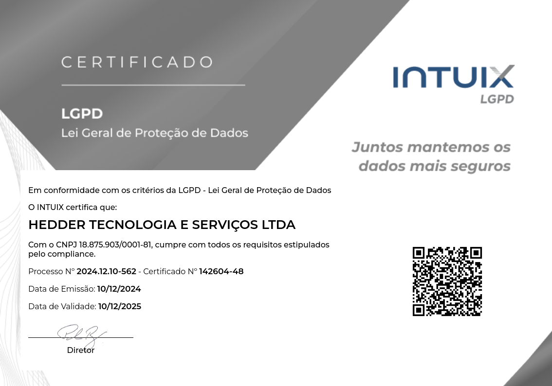 Este site os serviços aqui prestados, são mantidos e operados por Hedder Tecnologia e Serviços Ltda - CNPJ 18.875.903/0001-81.